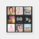 Une serviette pour une fête de cinquantaine d'années, célébrant sa vie avec un collage de 8 de vos photos. Modèles pour un nom, 50 ans et une date. Date de naissance ou date de la fête. Lettres blanches et grises. Arrière - plan noir.