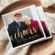 This personalized 50th wedding anniversary napkin features the couple's photo, along with their names and the date in sans serif font and the word "Cheers" in elegant gold-colored calligraphy script. A dark screen helps make the text pop. A great way to celebrate a special couple's golden anniversary!