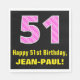 Cette conception joyeuse et amusante de serviette en papier à thème d'anniversaire comporte un grand nombre de "51" avec un motif rayé contenant des formes cardiaques coloré rose foncé et rose clair. Il comporte également le message de voeux d'anniversaire "Joyeux 51e anniversaire", et un nom modifiable. Des serviettes en papier comme celle-ci peuvent être amusantes à utiliser lors d’une fête organisée pour célébrer le 51e anniversaire de quelqu’un. Cela pourrait aussi être un choix amusant pour quelqu'un dont l'anniversaire tombe le jour de la Saint-Valentin (14 février), en raison de ses symboles et couleurs de coeur affectueux. [~Z0000436]