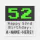 Ce design de serviette en papier geeky et nerdy à thème d'anniversaire comporte un grand numéro vert de style de jeu 8 bits "52" sur un arrière - plan de couleur noire. Il comporte également le message de voeux d'anniversaire "Joyeux 52e anniversaire", et un nom personnalisé. Des serviettes en papier comme celle-ci peuvent être utilisées lors d'une fête organisée pour célébrer le 52e anniversaire d'un historien de l'informatique, d'un programmeur informatique ou d'une personne qui aime les jeux vidéo rétro. [~Z0000404]