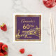 Une serviette pour une soirée élégante à thème violet et or 60ème anniversaire. Couleur arrière - plan violette et cadre en faux or. Décor tourbillon classique et notes de musique dorée. Modèles pour le nom, l'âge et la date du parti. L'arrière - plan est transparent afin que vous puissiez modifier la couleur pour qu'elle corresponde à votre thème.