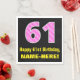 Cette conception joyeuse et amusante de serviette en papier à thème d'anniversaire dispose d'un grand numéro "61" avec un motif à rayures rose clair et rose foncé contenant des formes cardiaques. Il comporte également le message de voeux d'anniversaire "Joyeux 61e anniversaire", et un nom personnalisé. Des serviettes en papier comme celle-ci peuvent être amusantes à utiliser lors de la fête du soixante et unième anniversaire de quelqu’un. Cela pourrait aussi être un choix amusant pour quelqu'un dont l'anniversaire tombe le jour de la Saint-Valentin (14 février), en raison de ses symboles et couleurs de coeur affectueux. [~Z0000436]