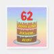 Cette serviette en papier sur le thème de l'anniversaire, joyeuse et amusante, présente une représentation de type dessin animé d'un gâteau d'anniversaire à trois étages avec des bougies en forme de chiffre sur le dessus montrant l'âge de 62 ans, ainsi que le message "HAPPY 62ND BIRTHDAY", et un nom de destinataire personnalisable. L'arrière - plan a un motif multicolore pastel arc-en-ciel inspiré du spectre dégradé. Des serviettes en papier sur le thème de l’anniversaire comme celles-ci pourraient être utilisées lors d’une fête célébrant le 62e anniversaire de quelqu’un. [~Z0000623]