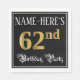 Ce design luxueux et orné de serviette en papier sur le thème de l'anniversaire comporte un nom modifiable et le message "62e anniversaire fête". Le grand numéro "62e" a un motif de coloriage d'inspiration fausse/imitation or, et les mots "fête d'anniversaire" sont dans un texte de style script opulent. L'arrière - plan est coloré en noir par défaut (bien qu'il puisse être customisé). Des serviettes en papier aussi sophistiquées et opulentes pourraient être utiles lors d’une fête d’anniversaire ou d’une célébration pour célébrer le soixante-deuxième anniversaire de quelqu’un. [~Z0000565]
