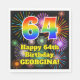 Cette conception passionnante et amusante de serviette en papier d'anniversaire comprend un grand nombre de "64" ayant un motif coloré de gradient de spectre arc-en-ciel inspiré. Il comporte également le message "Joyeux 64e anniversaire", et un nom personnalisable. L'arrière - plan est décoré d'un motif vibrant et coloré, inspiré par les feux d'artifice des célébrations. Des serviettes colorées sur le thème de l'anniversaire comme celle-ci pourraient être utilisées à une fête pour quelqu'un qui célèbre son 64e anniversaire. [~Z0000574]