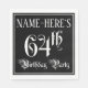 This opulent and fancy birthday paper napkin design a customizable name and the message "64th Birthday Party". The large number "64th" and the words "Birthday Party" are in elaborate script-style-text, and the background is black by default (although it can be customized). Elegant, elaborate paper napkins this might be useful at a birthday/celebration being held in celebration of somebody's 64th birthday. 2.
