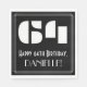 Cette apparence des années folles a inspiré un look vintage sur le thème de l'anniversaire de la conception de serviette en papier avec un grand style art déco inspiré du numéro "64", le message "Happy 64th Birthday," un nom personnalisable, et un motif de bordure composé de lignes fines. Des serviettes en papier sur le thème de l’anniversaire, amusantes et personnalisées, comme celle-ci, pourraient être utilisées à la fête du soixante-quatrième anniversaire de quelqu’un. [~Z0000494]