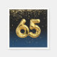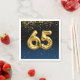 Ballons de fête en mylar or sur dégradé noir et bleu avec des confettis en étoile or pour 65ème anniversaire ou fête d'anniversaire.