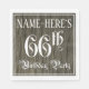 Ce design de serviette en papier orné et fantaisie, sur le thème de l'anniversaire, comporte un nom personnalisé et le message "66th Birthday Party". Le grand numéro "66e" et les mots "fête d'anniversaire" sont dans un texte élégant de style script. L'arrière - plan a un motif imitation/imitation à grains de bois. Des serviettes en papier luxueuses et élaborées comme celle-ci pourraient être utiles lors d’une fête d’anniversaire ou d’une fête pour célébrer le 66e anniversaire de quelqu’un. [~Z0000564]