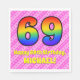 Ce design de serviette en papier sur le thème du 69e anniversaire, optimisé et amusant, est doté d'un grand nombre de "69" dont le motif coloré est inspiré par l'aspect d'un arc-en-ciel. Il comporte également le message "Joyeux 69e anniversaire", et un nom personnalisable. L'arrière - plan est doté d'un motif rayé rose clair et rose foncé, aux coeurs roses aimés. Des serviettes en papier personnalisables et amusantes comme celle-ci pourraient être utilisées lors d’une célébration d’anniversaire en l’honneur du soixante-neuvième anniversaire de quelqu’un. [~Z0000417]