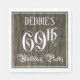 Cette conception de serviette en papier à thème fantaisie et élaborée de fête d'anniversaire comporte un nom modifiable et le message "69e fête d'anniversaire". Le grand numéro "69e" et les mots "fête d'anniversaire" sont dans un texte élégant de style script, et l'arrière - plan dispose d'une fausse/imitation motif inspirée du bois. Des serviettes en papier de luxe comme celle-ci pourraient être utilisées lors d’une fête d’anniversaire pour célébrer le soixante-neuvième anniversaire de quelqu’un. [~Z0000564]