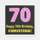 Ce design joyeux et amusant sur le thème de l'anniversaire de papier serviette dispose d'un grand nombre de "70" avec un motif rayé contenant des formes cardiaques coloré rose clair et rose foncé. Il comporte également le message de voeux d'anniversaire "Joyeux 70e anniversaire", et un nom personnalisé. Des serviettes en papier comme celle-ci pourraient être agréables à avoir lors d’une fête organisée pour célébrer le soixante-dixième anniversaire de quelqu’un. Cela pourrait aussi être un choix amusant pour quelqu'un qui a un anniversaire qui tombe le 14 février (Saint-Valentin), en raison de ses symboles et couleurs de coeur aimés. [~Z0000436]