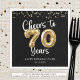 Célébrez un 70e anniversaire pour lui ou elle avec ces serviettes en papier personnalisées modernes et festives avec le titre CHEERS TO 70 YEARS avec des numéros de ballon en or métallisé et typographie de script, confettis en or et votre texte personnalisé dans votre choix de couleur arrière - plan (montré en noir). ASSISTANCE : Pour obtenir de l'aide sur la modification ou la personnalisation de la conception, le transfert de la conception à un autre produit ou si vous souhaitez coordonner des éléments, contactez le concepteur AVANT de commander par Zazzle Conversation ou par courriel makeitaboutyoustore@gmail.com.