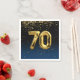 Ballons de fête en mylar or sur dégradé noir et bleu avec des confettis en étoile or pour 70e anniversaire ou fête d'anniversaire.