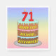 Cette serviette en papier à thème d'anniversaire coloré et optimisé présente une représentation de dessin animé d'un gâteau d'anniversaire à trois niveaux avec des bougies en forme de chiffre sur le dessus montrant l'âge de "71", avec le message "HAPPY 71ST BIRTHDAY", et un nom de destinataire personnalisé. L'arrière - plan dispose d'un motif multicolore pastel en arc-en-ciel inspiré du spectre dégradé. Des serviettes en papier comme celles-ci pourraient être utilisées lors d’une fête organisée pour célébrer le 71e anniversaire de quelqu’un. [~Z0000623]