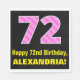 Cette conception amusante et joyeuse de serviette en papier à thème d'anniversaire dispose d'un grand numéro "72" avec un motif rayé rose foncé et rose clair contenant des formes cardiaques. Il comporte également le message de voeux d'anniversaire "Joyeux 72e anniversaire", et un nom modifiable. Des serviettes en papier comme celle-ci peuvent être amusantes à utiliser lors de la fête du 72e anniversaire de quelqu’un. Cela pourrait aussi être un choix amusant pour quelqu'un qui a un anniversaire qui tombe le 14 février (Saint-Valentin), en raison de ses symboles et couleurs de coeur aimés. [~Z0000436]
