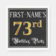Ce design luxueux et soigné de serviette d'anniversaire présente un nom personnalisé et le message "73ème anniversaire fête". Le grand numéro "73ème" a un motif de coloriage d'inspiration fausse/imitation or, et les mots "fête d'anniversaire" sont dans un texte de style script opulent. L'arrière - plan est coloré en noir par défaut (bien qu'il puisse être customisé). Des serviettes en papier élégantes et ornées comme celle-ci pourraient être utilisées lors d’une fête d’anniversaire pour célébrer le 73e anniversaire de quelqu’un. [~Z0000565]