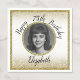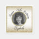This pretty white and gold 75th birthday napkin includes a customizable photo with a gold border and gold glitter edges, and will set a fun and celebratory tone. Note: The foil border is printed and not actual shiny foil!
