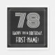 Ce design de serviette en papier à thème d'anniversaire à l'allure vintage comprend un grand look Art Déco inspiré du numéro "78", le message "HAPPY 78th BIRTHDAY", un nom personnalisé, et un motif de frontière composé de lignes. Des serviettes en papier sur le thème de l’anniversaire comme celle-ci pourraient être amusantes à utiliser lors d’une fête organisée pour célébrer le soixante-dix-huitième anniversaire de quelqu’un. [~Z0000395]