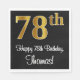 Cette conception sophistiquée, luxueuse et élégante de serviette en papier à thème d'anniversaire comporte un grand numéro ordinal "78e" ayant une imitation/fausse apparence or, en plus du message de voeux d'anniversaire "Happy 78th Birthday", et un nom personnalisable dans une police de style script. Il dispose également d'une arrière - plan de couleur noire. Des serviettes en papier sur le thème de l’anniversaire comme celle-ci pourraient être utilisées lors d’une fête d’anniversaire célébrant le soixante-dix-huitième anniversaire de quelqu’un. [~Z0000516]