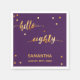 Serviette En Papier 80e anniversaire violet or bonjour 80 nom script