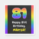 Ce design de serviette en papier sur le thème de l'anniversaire, joyeux et passionnant, est doté d'un grand nombre de "81" avec un motif dynamique inspiré du spectre arc-en-ciel, ainsi que du message "Happy 81st Birthday," et d'un nom de destinataire modifiable. Des serviettes en papier sur le thème de l'anniversaire comme celle-ci pourraient être amusantes à utiliser lors d'une fête organisée pour quelqu'un qui célèbre son 81e anniversaire. [~Z0000629]
