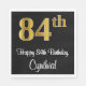 Cette conception sophistiquée, élégante et luxueuse de serviette en papier à thème d'anniversaire comporte un grand numéro ordinal "84th" ayant une apparence fausse/imitation or, en plus du message de voeux d'anniversaire "Happy 84th Birthday," et un nom modifiable dans une police de style script. Il dispose également d'une arrière - plan de couleur noire. Des serviettes en papier comme celle-ci pourraient être utilisées à une fête d'anniversaire pour quelqu'un qui fête son 84e anniversaire. [~Z0000516]