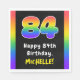Cette conception audacieuse et optimisée de serviette en papier à thème d'anniversaire comporte le numéro "84" avec un motif multicolore de spectre arc-en-ciel inspiré du gradient, avec le message "Happy 84th Birthday," et un nom de destinataire personnalisé. Des serviettes en papier sur le thème de l’anniversaire, comme celles-ci, pourraient être utilisées lors d’une fête d’anniversaire célébrant le 84e anniversaire de quelqu’un. [~Z0000629]