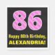 Cette conception amusante et joyeuse de serviette en papier sur le thème de l'anniversaire dispose d'un grand numéro "86" avec un motif rayé contenant des formes cardiaques coloré rose foncé et rose clair. Il comporte également le message de voeux d'anniversaire "Joyeux 86e anniversaire", et un nom personnalisé. Des serviettes en papier comme celle-ci peuvent être amusantes à utiliser lors de la célébration ou de la fête du 86e anniversaire de quelqu’un. Cela pourrait aussi être un choix amusant pour quelqu'un dont l'anniversaire tombe le 14 février (Saint-Valentin), en raison de ses symboles et couleurs de coeur aimés. [~Z0000436]