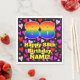 Cette conception colorée et joyeuse de serviette en papier à thème d'anniversaire comporte un grand nombre de "88" ayant un dégradé de spectre arc-en-ciel inspiré motif. Il comporte également le message "Joyeux 88e anniversaire", et un nom personnalisé. L'arrière - plan présente un motif aux formes de coeur violet, rouge et rose. Des serviettes en papier jolies et gaies comme celle-ci peuvent être amusantes à avoir lors d’une fête d’anniversaire ou d’une fête pour célébrer le quatre-vingt-huitième anniversaire de quelqu’un. [~Z0000550]
