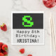 Ce design de serviette en papier à thème d'anniversaire amusant et audacieux comprend un grand modèle de jeu vert 8 bits numéro "8" sur un arrière - plan de couleur noire. Il comporte également le message de voeux d'anniversaire "Happy 8th Birthday," et un nom personnalisé. Des serviettes en papier personnalisables et amusantes comme celle-ci pourraient être utilisées lors d’une fête d’anniversaire pour célébrer le 8e anniversaire de quelqu’un. [~Z0000404]