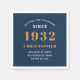 Une serviette en papier classique personnalisée pour cette fête d'anniversaire pour une personne spéciale née en 1932 et ayant 90 ans. Ajoutez le nom à ce design vintage de style rétro bleu, blanc et or pour un cadeau personnalisé de 90ème anniversaire. Modifiez facilement le nom et l'année avec le modèle fourni. Un merveilleux cadeau d'anniversaire personnalisé. Plus de cadeaux et de fournitures de fête pour cette 90e fête disponibles dans le magasin.