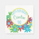 Célébrez l'anniversaire de l'enfant de 90 ans avec des serviettes en papier aux fleurs illustrées colorées. Son Nom Personnalisé à imprimer en Typographie de Script et l'Âge et Joyeux Anniversaire en texte Turquoise unique.