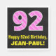 Ce modèle de serviette en papier à thème d'anniversaire joyeuse et amusante comprend un grand numéro "92" avec un motif rayé contenant des formes cardiaques colorées rose pâle et rose foncé. Il comporte également le message de voeux d'anniversaire "Joyeux 92e anniversaire", et un nom personnalisé. Des serviettes en papier comme celle-ci pourraient être agréables à avoir lors d’une fête pour célébrer le quatre-vingt-dix-deuxième anniversaire de quelqu’un. Cela pourrait aussi être un choix amusant pour quelqu'un dont l'anniversaire tombe le jour de la Saint-Valentin (14 février), en raison de ses symboles et couleurs de coeur affectueux. [~Z0000436]