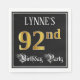 Ce design de serviette d'anniversaire orné et fantaisiste comporte un nom personnalisé et le message "92e anniversaire fête". Le grand numéro "92nd" a un motif de coloriage imitation/faux d'inspiration or, et les mots "fête d'anniversaire" sont dans un texte de style script luxueux. L'arrière - plan est coloré en noir par défaut (bien qu'il puisse être customisé). Des serviettes en papier élégantes et luxueuses comme celle-ci pourraient être utilisées lors d’une fête d’anniversaire ou d’une célébration pour honorer le 92e anniversaire de quelqu’un. [~Z0000565]