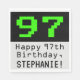 Cette serviette en papier à thème d'anniversaire nerveux et amusant est dotée d'un grand jeu vidéo classique vert numéro "97" sur un arrière - plan de couleur noire. Il comporte également le message de voeux d'anniversaire "Joyeux 97e anniversaire", et un nom personnalisé. Des serviettes en papier comme celle-ci peuvent être utilisées lors d'une fête organisée pour célébrer le 97e anniversaire d'un programmeur d'ordinateur, d'un scientifique ou d'une personne qui apprécie les jeux informatiques classiques. [~Z0000404]