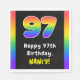 Cette serviette en papier à thème d'anniversaire joyeux et audacieux comporte un grand numéro "97" avec un motif multicolore inspiré du spectre arc-en-ciel, avec le message "Happy 97th Birthday", et un nom de destinataire modifiable. Des serviettes en papier sur le thème de l’anniversaire comme celle-ci pourraient être une façon amusante de célébrer le quatre-vingt-dix-septième anniversaire de quelqu’un. [~Z0000629]