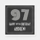 Ce design de serviette en papier d'aspect vintage, sur le thème de l'anniversaire, est doté d'un grand look Art déco inspiré du numéro "97", du message "HAPPY 97th BIRTHDAY", d'un nom personnalisé et d'un motif de frontière composé de lignes. Des serviettes en papier personnalisées et amusantes comme celle-ci pourraient être utilisées lors d’une fête d’anniversaire pour célébrer le quatre-vingt-dix-septième anniversaire de quelqu’un. [~Z0000395]