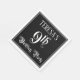 Ce design opulent et luxueux de serviette en papier à thème d'anniversaire comporte un nom modifiable et le message "9e fête d'anniversaire". Le grand numéro "9e" et les mots "fête d'anniversaire" sont en texte élaboré de style script, et l'arrière - plan est coloré en noir par défaut (bien qu'il puisse être customisé). Des serviettes en papier élégantes et ornées comme celle-ci pourraient être utiles lors d’une fête d’anniversaire ou d’une fête organisée pour célébrer le 9e anniversaire de quelqu’un. [~Z0000563]