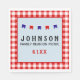 Faites tout pour que les serviettes apparaissent avec ce design amusant rouge, blanc et bleu avec un arrière - plan de nappes rouge-à damiers, une jolie petite bannière de drapeau à bottes, et le nom de votre événement. Daté, et vous pouvez le modifier ou le supprimer.