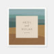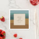 Serviettes mariages modernes avec vos noms et date mariage sur un arrière - plan côtier abstrait.