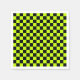 A vibrant checkerboard pattern with alternating neon yellow and black squares creates a striking geometric design, conveying a bold and energetic tone.