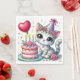 Serviette En Papier Adorable Chat Célébrer Anniversaire avec gâteau