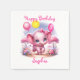 Un adorable éléphant rose célèbre son anniversaire avec des ballons roses dans un beau monde d'imaginaire rose. Personnalisez avec le nom et l'âge de votre enfant.