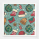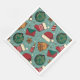 Image merveilleuse sur les serviettes en papier d'un chapeau de Père Noël, cloches, ornements, et motif de bas de Noël.