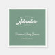 Cette serviette en papier baby shower présente le thème "Notre plus grande aventure attend" sur un arrière - plan vert sauge de forêt. Il est parfait pour vos évènements rustiques ou extérieurs.