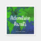 Adventure Awaits carte du monde planète terre destination mariage serviettes de fête de mariage. Serviettes en papier personnalisées au design vintage et élégante typographie de script de brosse. Impression mignonne pour couple mariage aventureux, marié et marié international, monsieur et madame, voyageurs, lune de miel, retraité, etc. Ajoutez votre propre citation ou un dicton inspirant. Image arrière - plan de la terre et de l'océan. L'aventure commence ici !