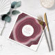Les conceptions de mariage ne sont pas toutes créées égales. Les dispositions asymétriques de certaines pièces de cette élégante série de mariage prouvent que c'est une bonne chose ! La serviette de mariage assortie présentée ici présente des bandes ondulées de couleur allant du bourgogne au rose doux encerclant un effet de cristal scintillant pour former un accent de géode/agate. Ajoutez facilement vos noms et date de mariage sur une étiquette blanche centrée en utilisant le modèle fourni. Recherchez ID647 pour voir toutes les pièces coordonnées de cette série.