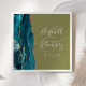 Ces élégantes serviettes mariages modernes présentent une aquarelle turquoise décorée de parties scintillant en faux or. Customisez facilement le texte d'ivoire sur un arrière - plan vert olive, avec les noms de la mariée et du marié en calligraphie manuscrite sur une grande esperluette.