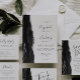 Ces élégantes serviettes mariages modernes présentent une aquarelle noire décorée de parties scintillant en faux argent. Customisez facilement le texte gris fusain sur un arrière - plan blanc, avec les noms de la mariée et du marié dans la calligraphie manuscrite sur une grande esperluette gris pâle.
